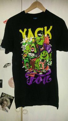 Schwarzes "Yackfou"-T-Shirt mit buntem, abgespaceten Graphic-Print [Modell: "Abrakadabra"] . :)