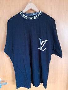 Angeboten wird ein LV Shirt in Schwarz mit silberner Schrift.