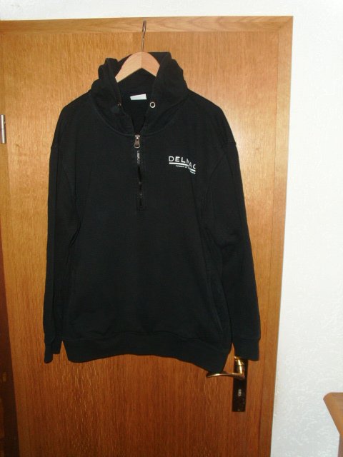 Biete hier einen Hoodie von Delmao in Gr. XXL an. Er ist schwarz und besteht aus einem Baumwollgemisch. Vorn befindet sich ein kurzer Reißverschluss und auf der linken Brustseite der Firmenschriftzug. Der Hoodie hat zwei seitliche Eingrifftaschen. Das Zugband in der Kapuze ist NICHT mehr vorhanden. Der Hoodie wurde getragen und ist gut erhalten.