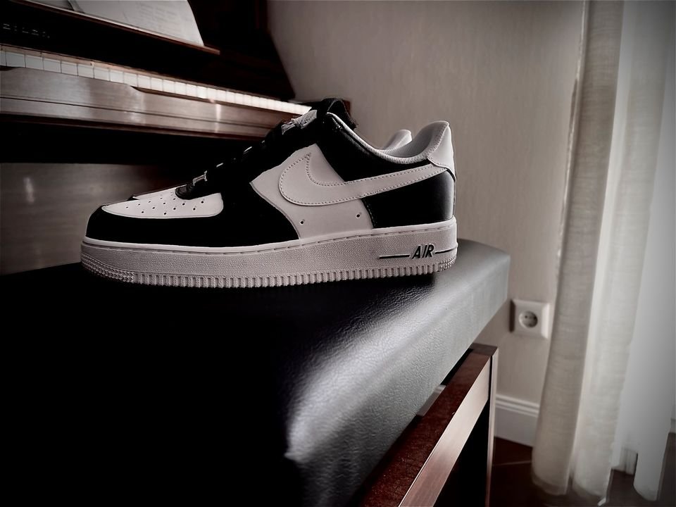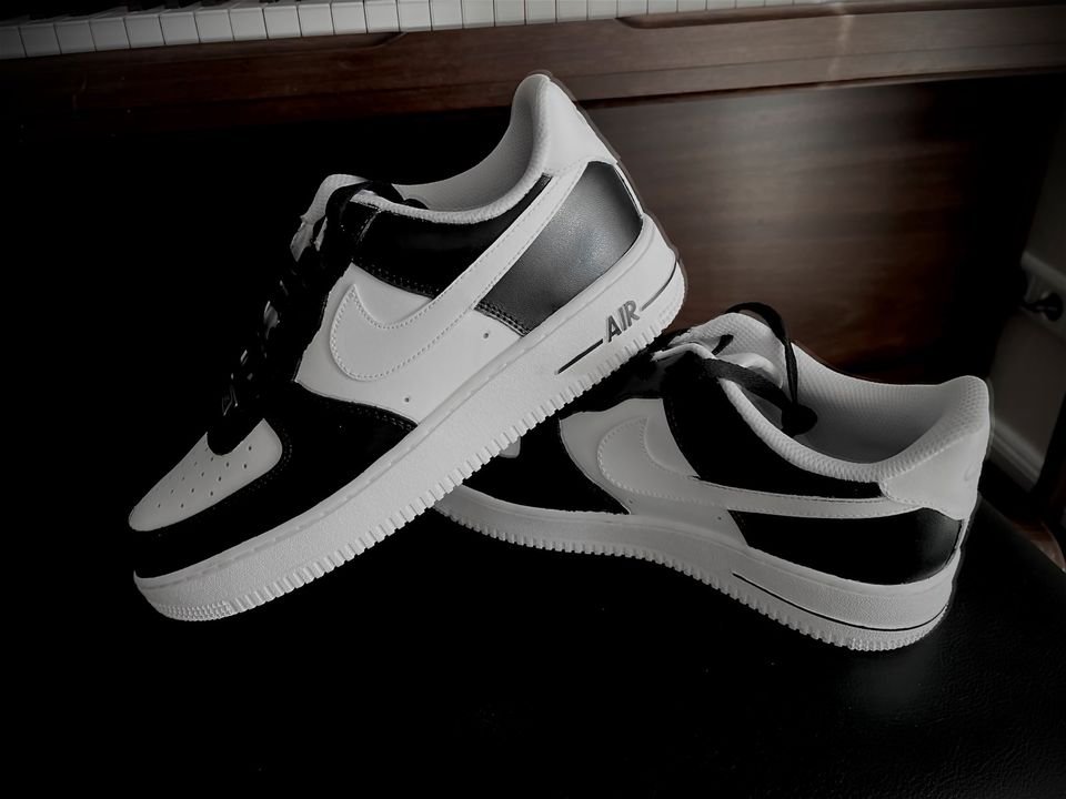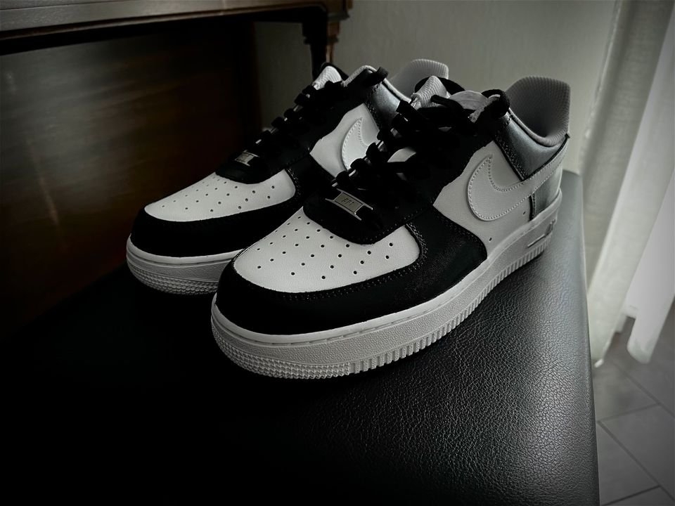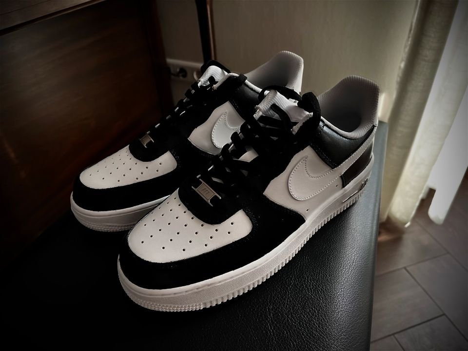 Verkaufe hier meine neuen Nike Air force 1 custom in der farbe schwarz weiß an. Sind wie neu, habe sie nur einmal angezogen um fotos zu machen.