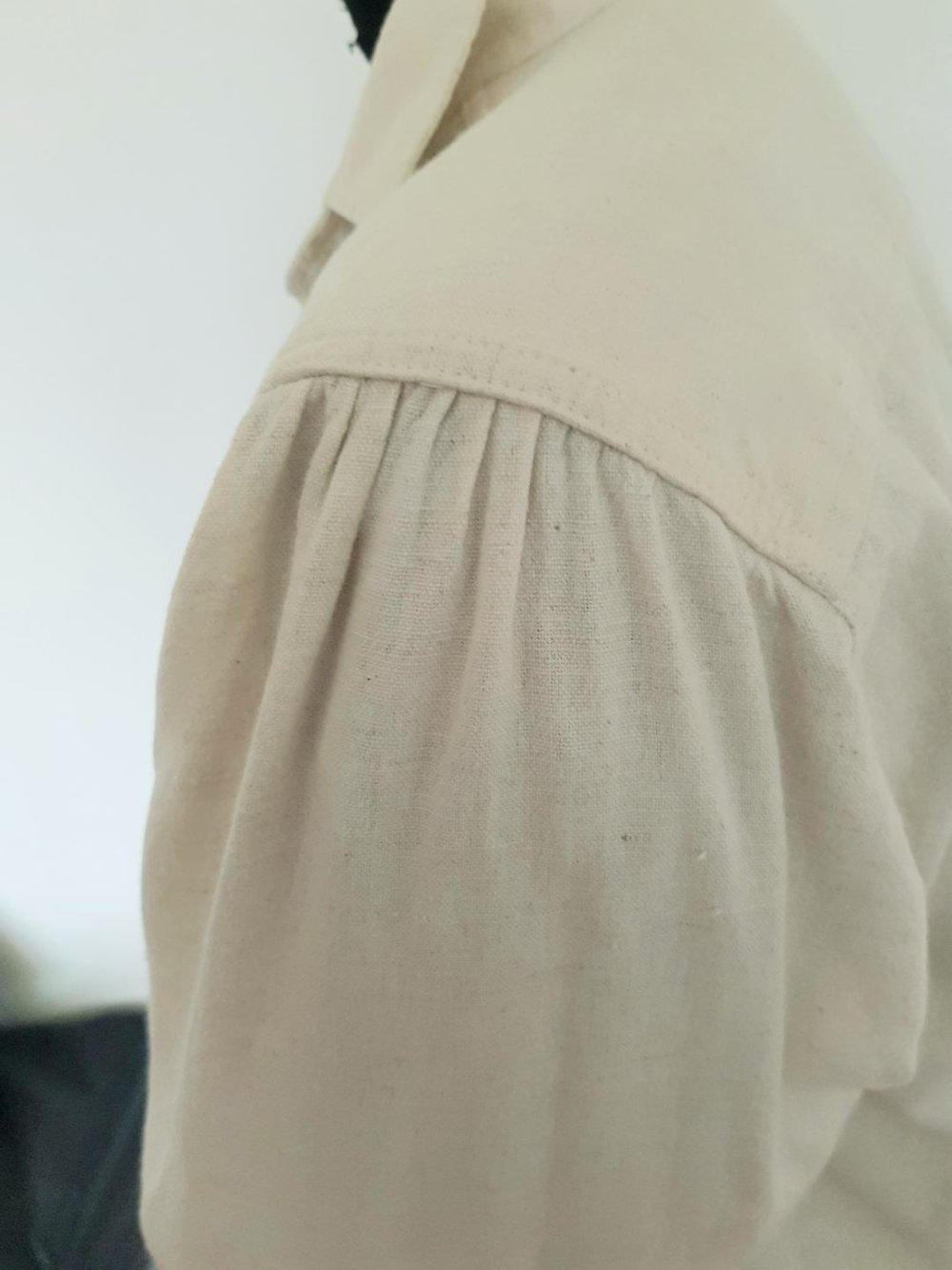 Schöne lange Ärmel und am Schulter- Ende ist der Stoff schön gerafft.