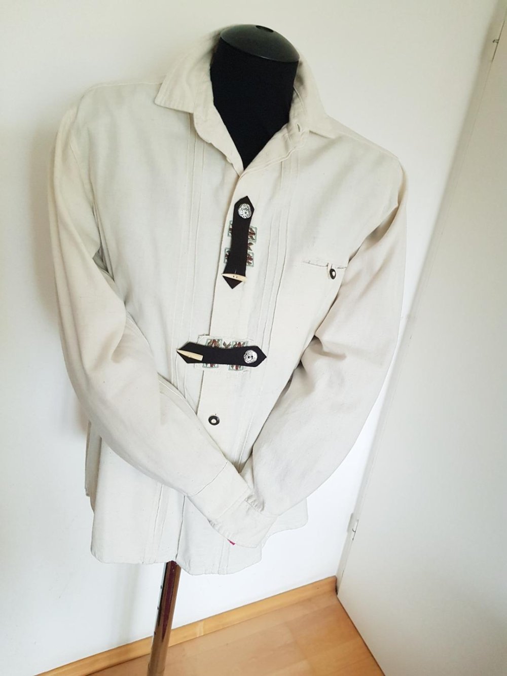 Biete ein zeitlos tragbares Trachtenhemd v. d. Fa. Almrausch, Farbe beige zu 100% in Leinen.