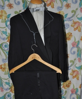SMOKING Anzug Einreiher Schalkragen/Seidenspiegel Hose/Seidengalon Gr. 28 Gvl