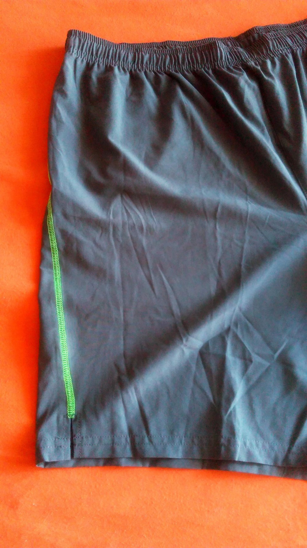 NEU, nie getragen; Graue Sporthose mit Neogrünen Seitenstreifen, Kordelzug; innen eine kleine Tasche (siehe Foto) Sehr dünner Stoff. Bundweite ca. 46 cm; Länge= 47 cm; Größe 56/58 XL