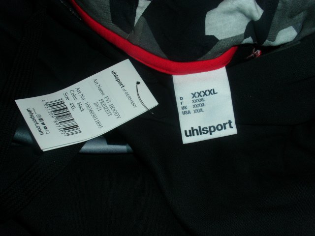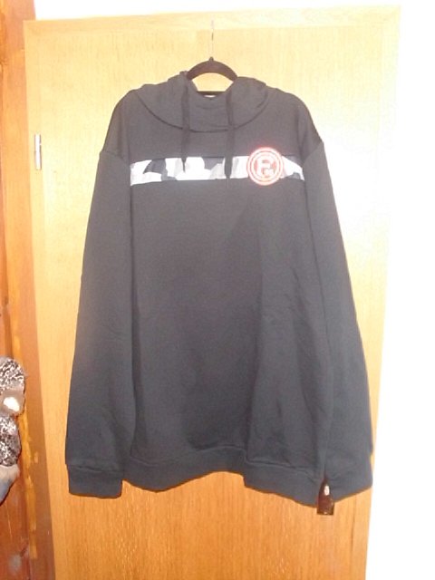 Biete hier einen Hoodie von Uhlsport in Größe 4 XL an. Es handelt sich um einen Hoodie von Fortuna Düsseldorf in schwarz. Laut Etikett aus der Saison 2020/21. Der Hoodie hat vorn einen Streifen in Camouflagemuster in den Farben schwarz, grau und weiß. In diesem Muster ist auch die Kapuze gefüttert. Außerdem befindet sich vorn das Logo von Fortuna Düsseldorf. Der Hoodie ist neu, ungetragen und mit Etikett versehen. Er stammt aus einer Sammelauflösung.