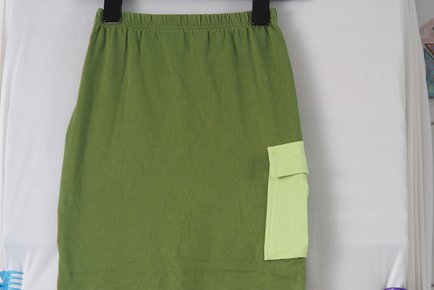 Langer khaki Rock mit türkis Gr. 140