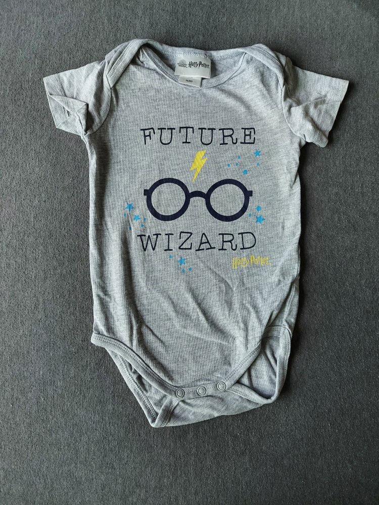 Superschöner kurzärmliger Harry-Potter-Body "Future wizard", Gr. 74/80. Habe ihn neu gekauft und mein Sohn hatte ihn vielleicht 2x an. Daher top Zustand. Mit amerikanischem Ausschnitt, super dehnbar.