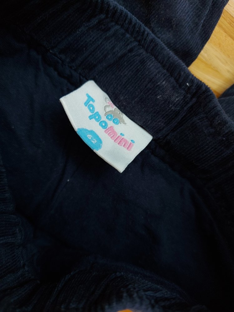Super bequeme dunkelblaue Hose im Cordlook in Gr. 62. Hält angenehm warm. Mit Gummizug an Bauch und Füßen, damit nichts verrutscht :)