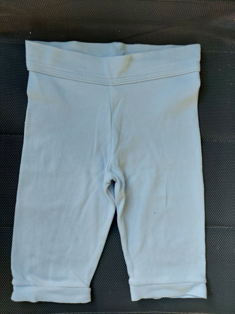 Hellblaue Babyhose aus 100% Baumwolle, Gr. 68. Weit geschnitten und passt somit auch leicht über speckige Babybeinchen :-) Leichtes Pilling vorhanden.