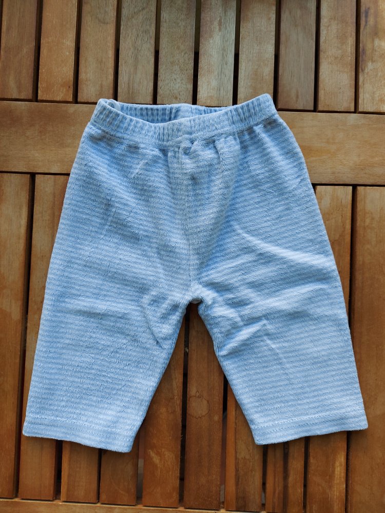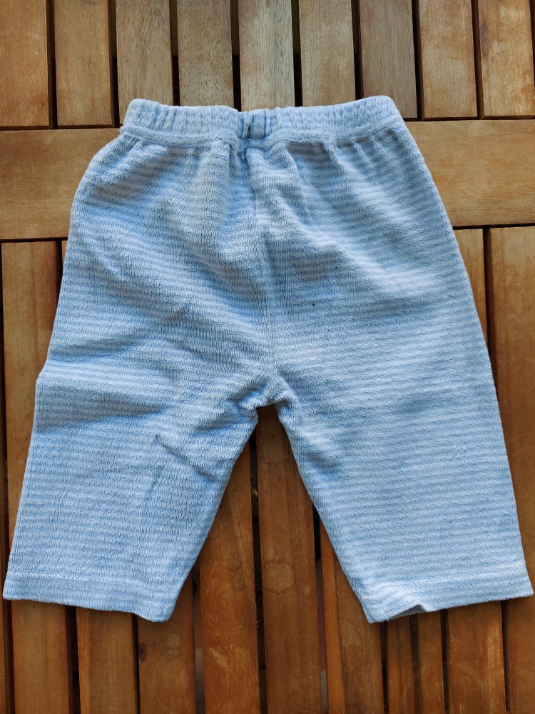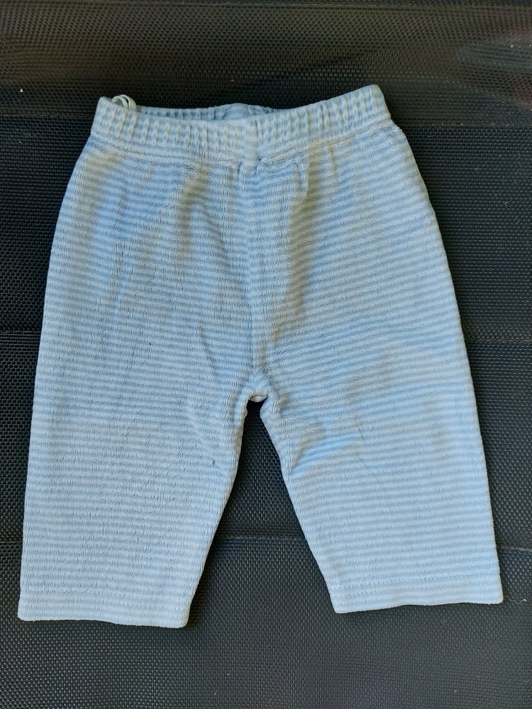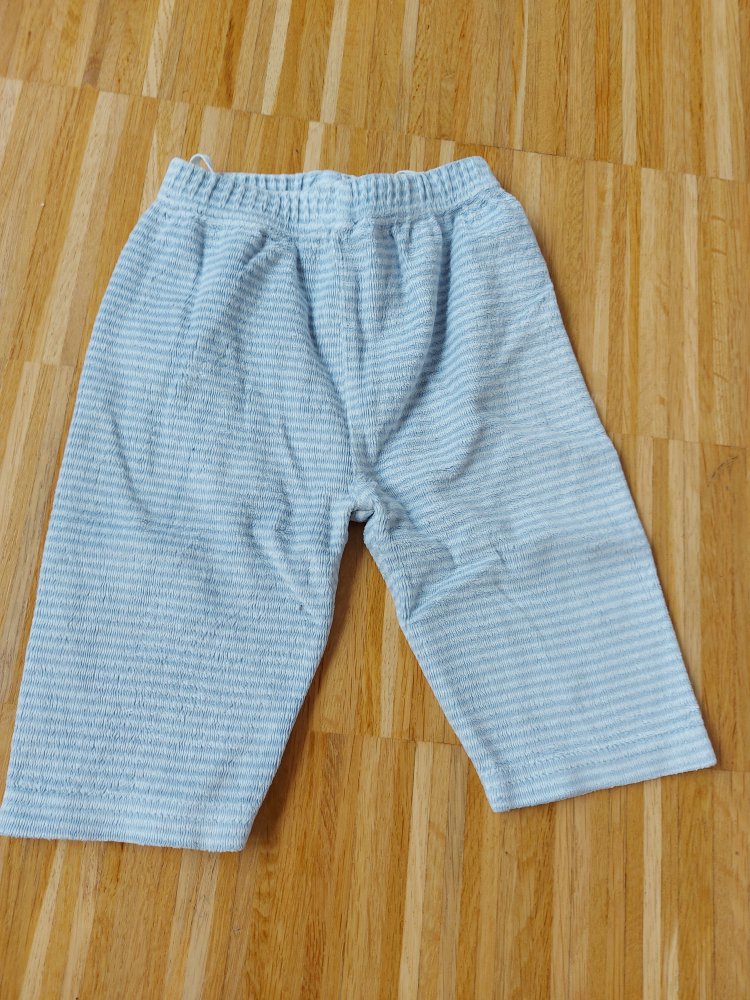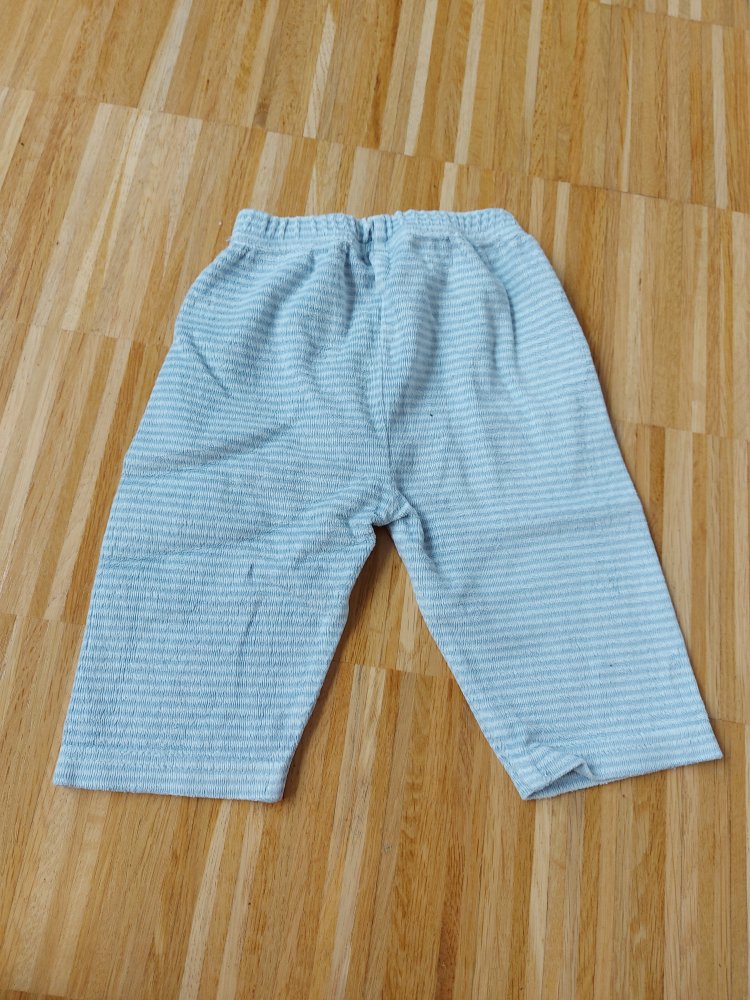 Süße hellblau gestreifte Babyhose. Bequem und robust. Leider ohne Schildchen, müsste ca. Gr. 68 passen. Leichtes Pilling vorhanden.