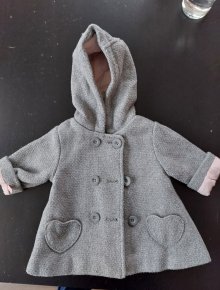 graue gefütterte Babyjacke mit Schneckenmuster innen und Kapuze, Gr. 62