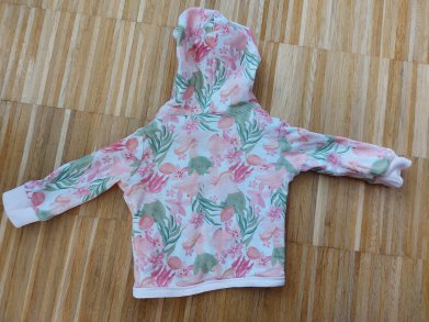 wunderschöne rosa Baby-Kapuzenjacke / Wendejacke mit Tropenblumen