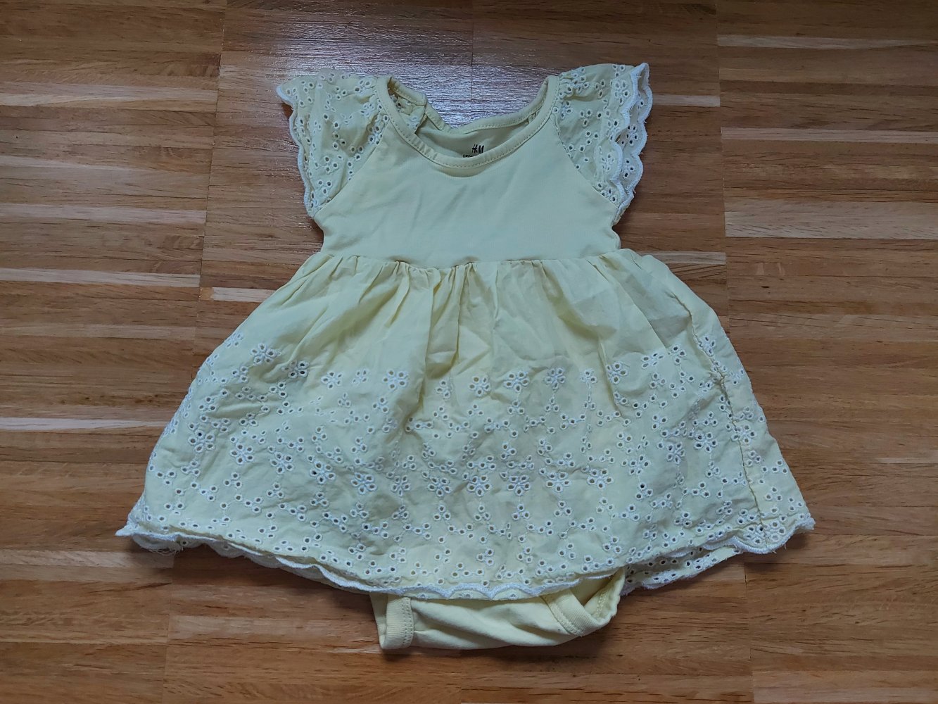 süßes zitronengelbes Babykleidchen mit weißer Stickerei, Gr. 62 Bodykleid