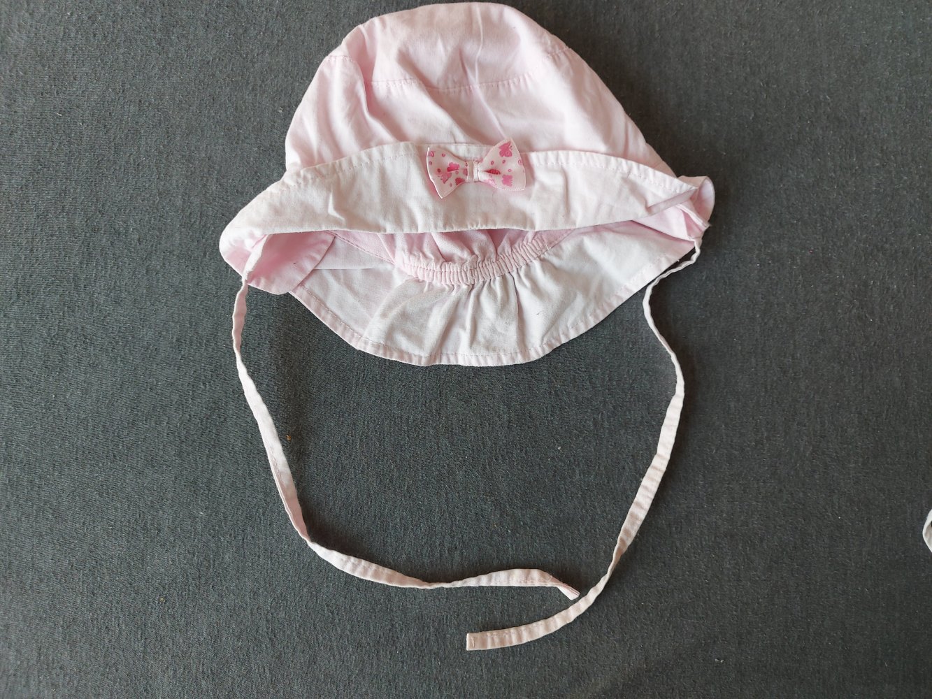 rosa Sommerhut mit Schleife für Babys, Gr. 43-45 mit Schnüren