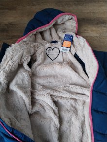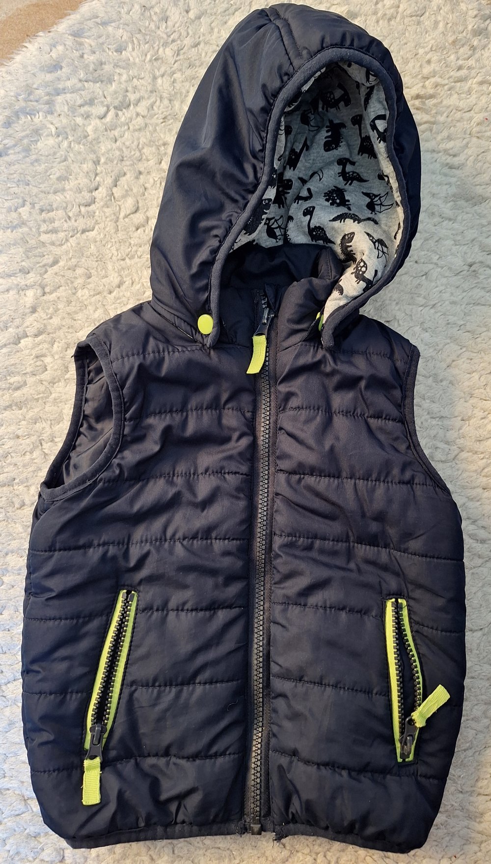 Coole dunkelblaue Steppweste mit Reißverschluss und Kapuze, Gr. 86.