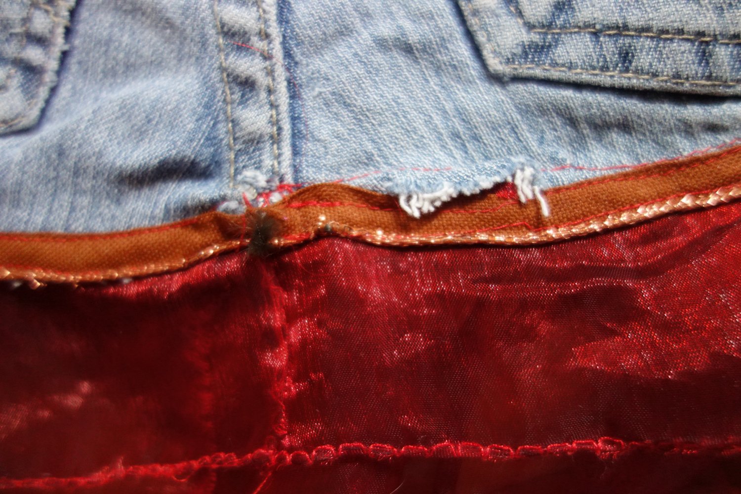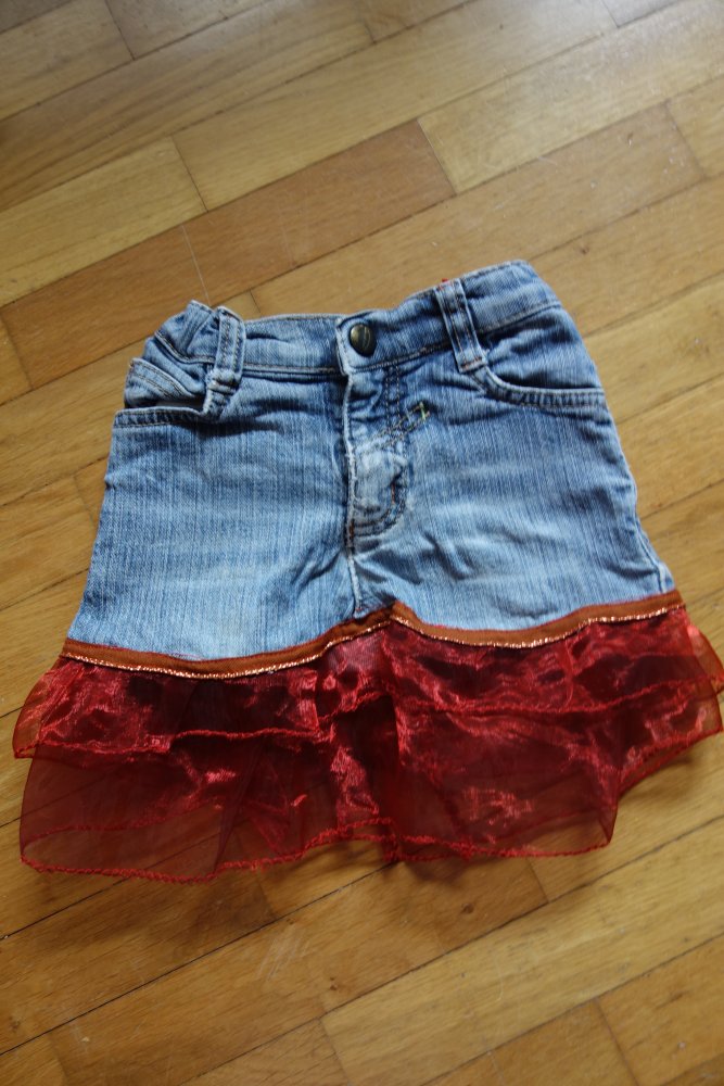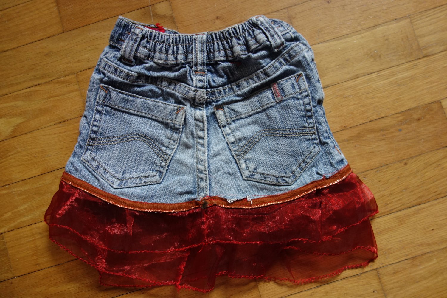 Jeansrock sanetta upcycling handmade hellblau rot 80