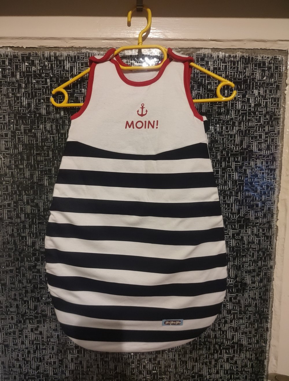 Neuer Schlafsack in 62/68, oben mit Druckknöpfe und unten mit Reißverschluss.