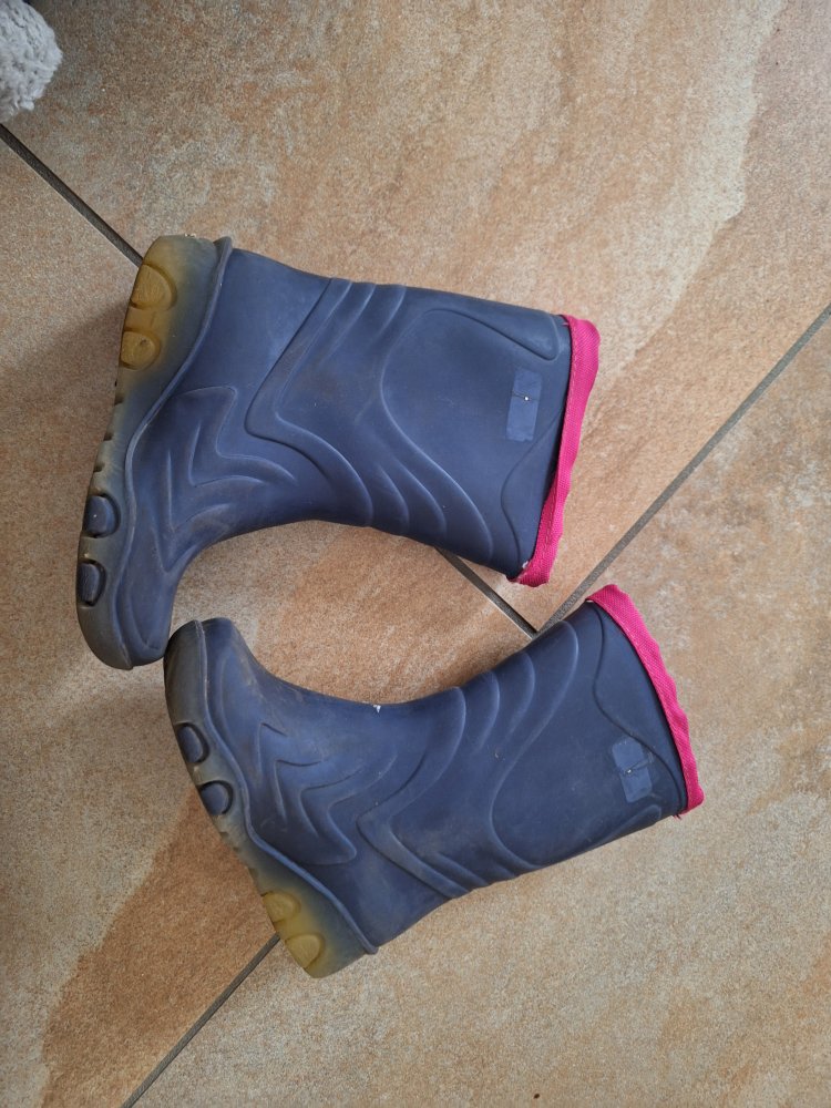 Gefütterte Gummistiefel mit Pferden, die auch blinken, Gr. 22/23. Gebrauchter Zustand. Am vorletzten Bild erkennt man z.B., wo die Namensschilder waren, da kann man ja seine eigenen noch mal rauf kleben :)