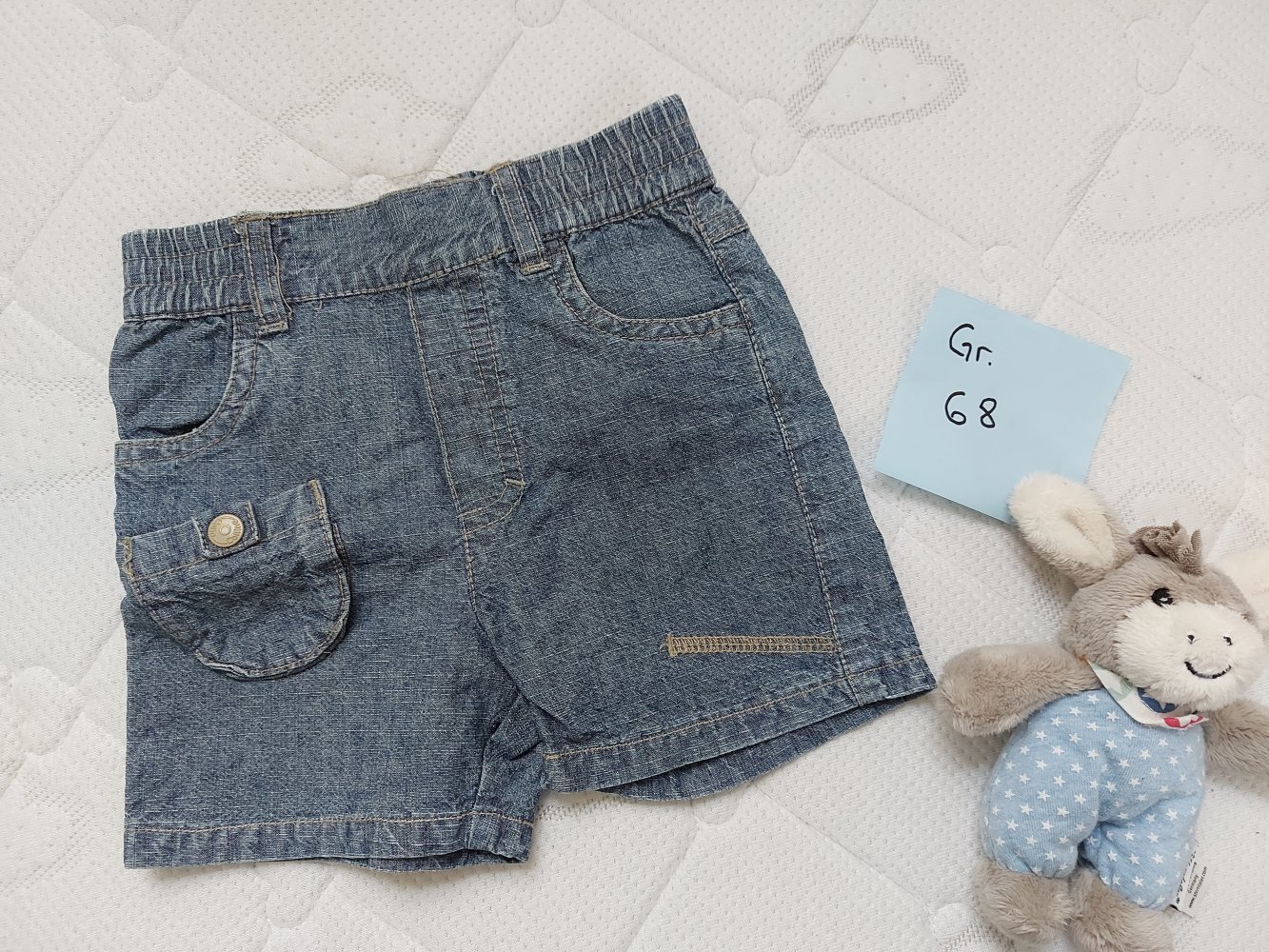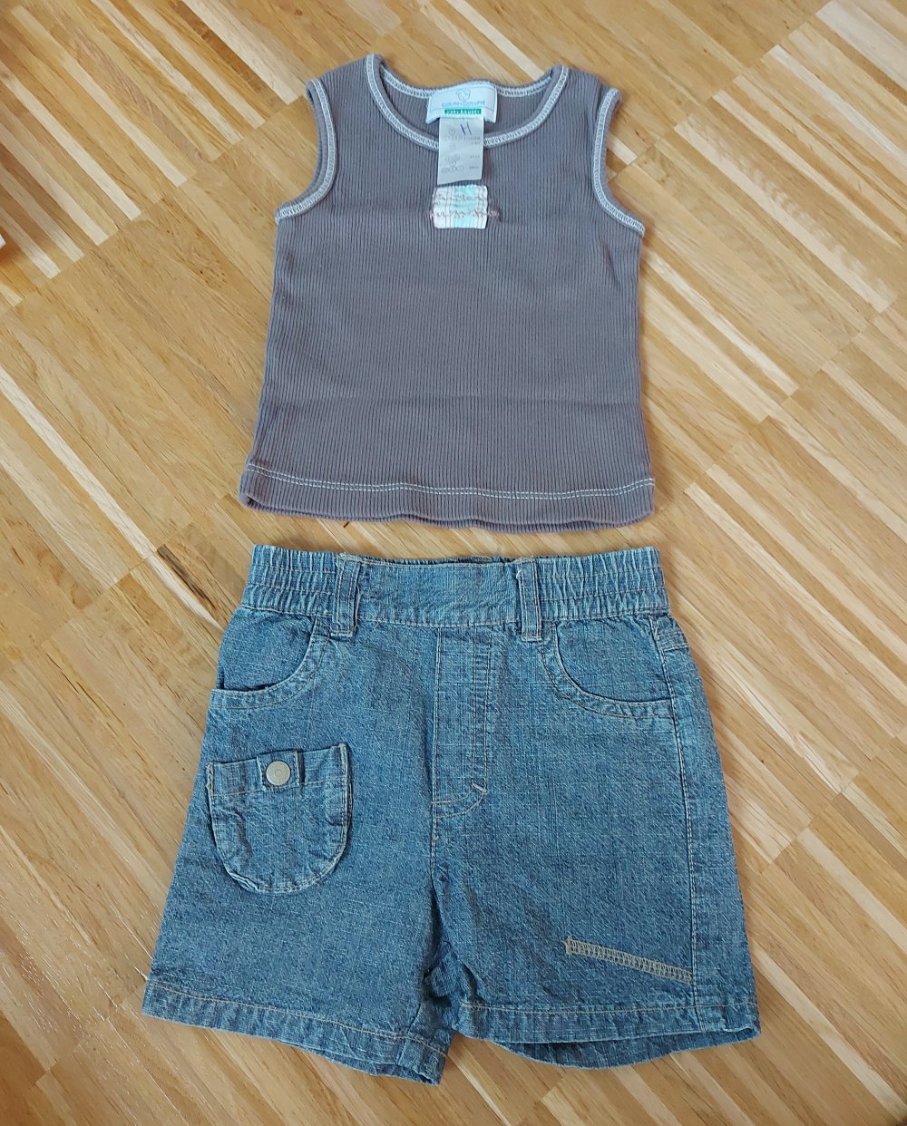 kurzes Sommeroutfit, bestehend aus kurzer Jeans und Achselshirt, Gr. 68