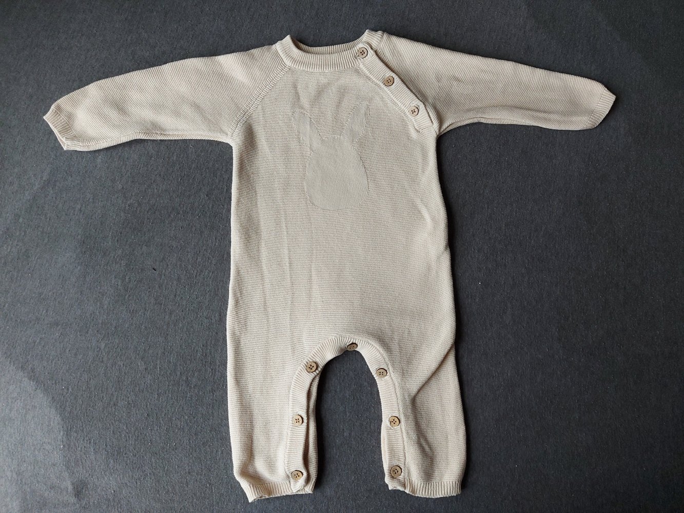 langärmliger beiger Babystrampler / Jumper mit Hase Gr. 68