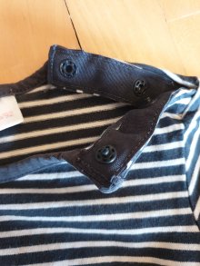 Biete hier ein T-Shirt von Cri-Cri in Größe 86 an. Es ist hellblau, hat vorn eine kurze Knopfleiste und besteht aus 100% Baumwolle. Auf der linken Brustseite befindet sich ein Motiv mit Schriftzug. Das T-Shirt wurde getragen und hat vorn am Motiv kleine helle Schttenfleckchen, ansonsten ist es gut erhalten. Zum Spielen noch gut zu tragen. Daher verkaufe ich es auch günstiger.