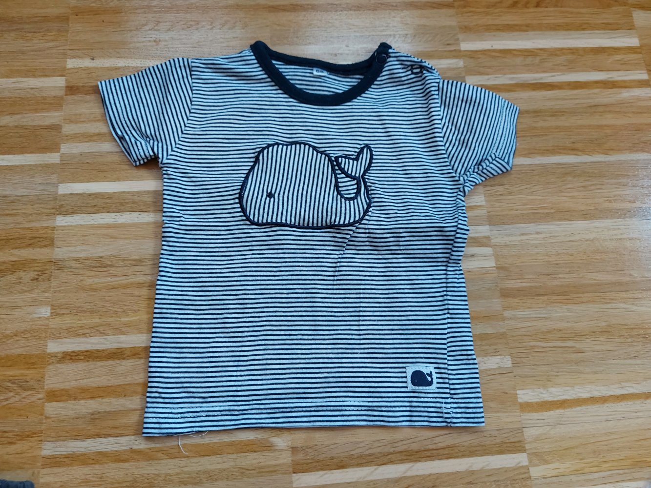kurzärmliges weiß-blau gestreiftes T-Shirt mit Wal, Gr. 68
