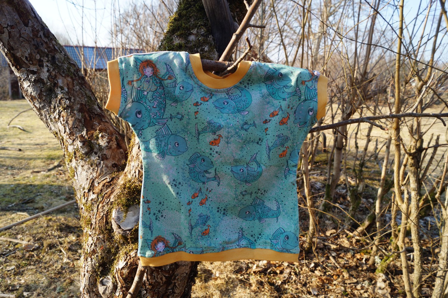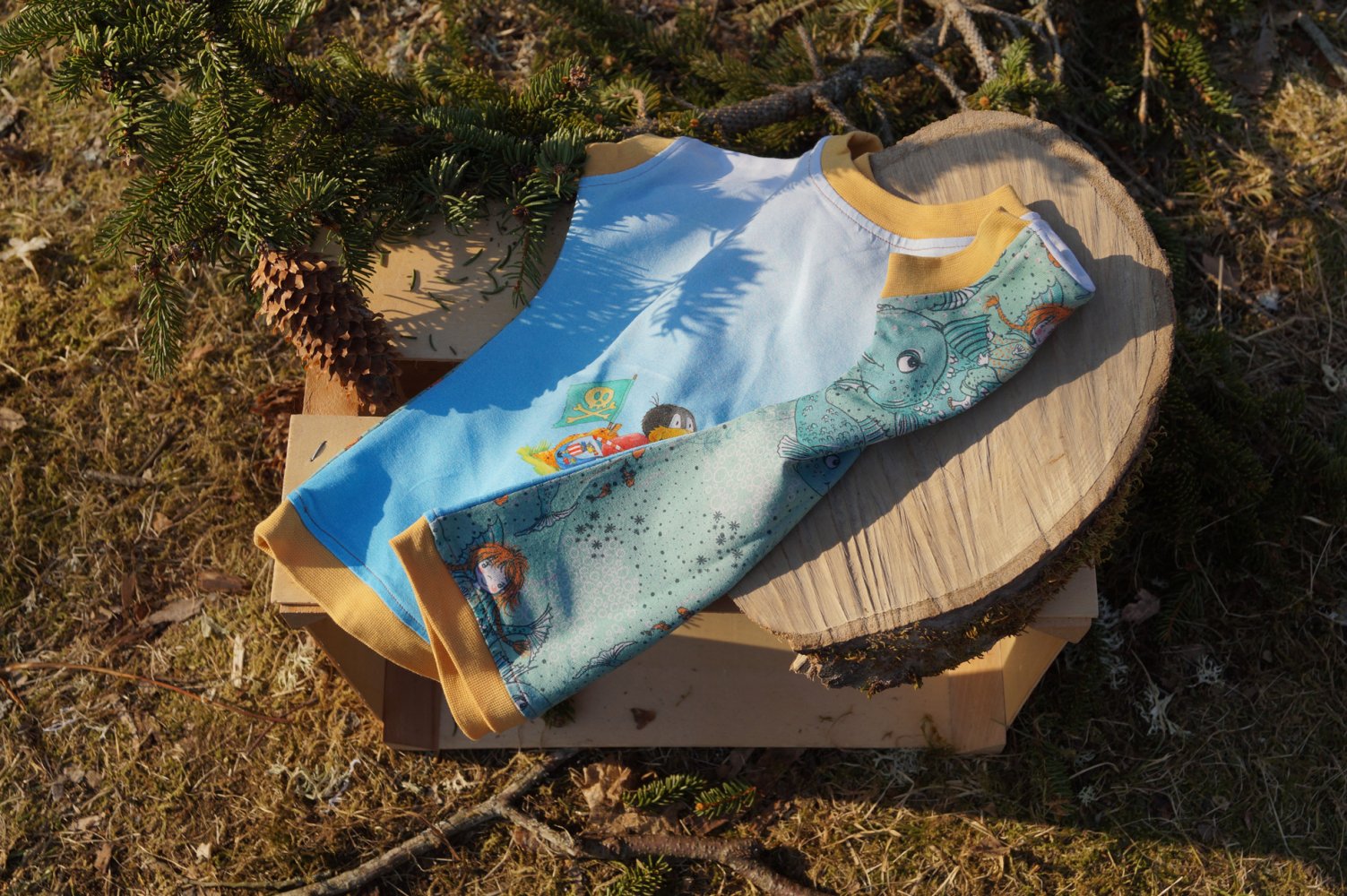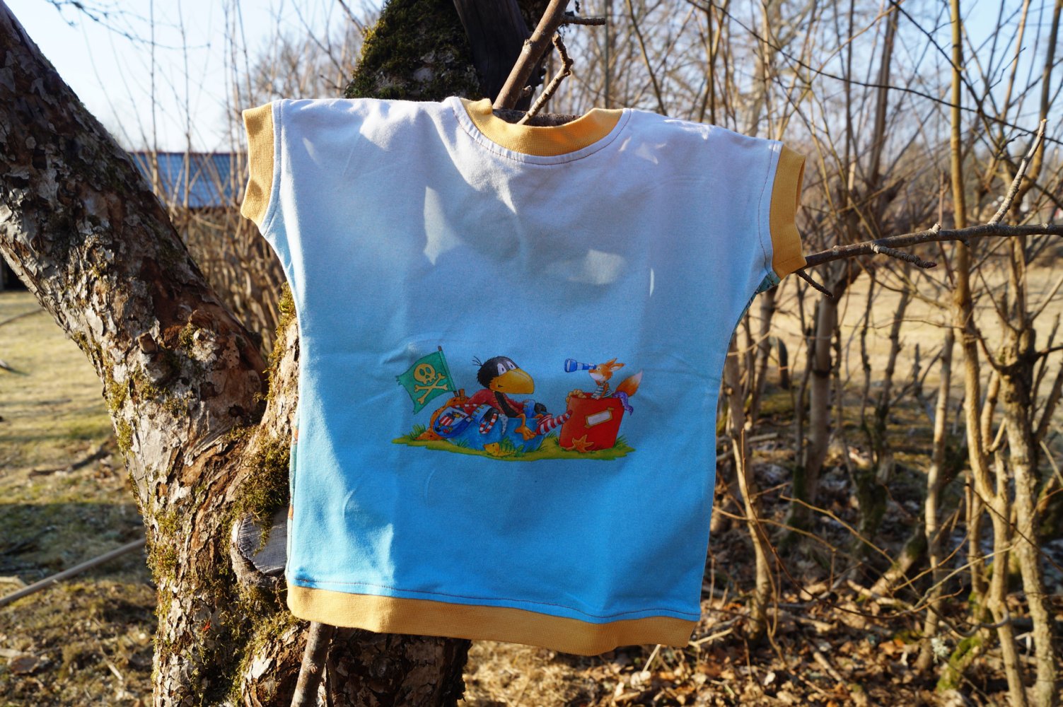 Immer abwechslungsreich angezogen, heute die eine Seite vorn, morgen die andere, unsere Kleinen lieben diese Shirts, dieses wurde nie getragen, weil wir auf wollige Stoffe umgestiegen sind und sucht nun einen Liebhaber.