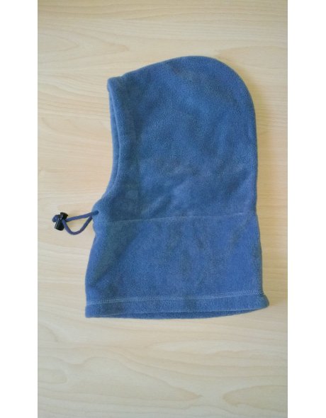 Diese Schlupfmütze ist aus Fleece. Sie ist circa 40 cm lang und etwa 25 cm breit.