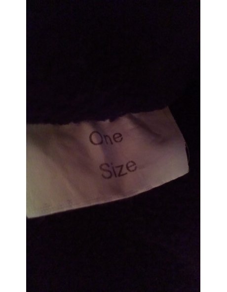 Die blau-schwarze Mütze mit zwei `Zöpfen` ist außen Strickware und innen Fleece. Eine Angabe zum Hersteller lässt sich nicht finden. Die Größe ist mit `one size`angegeben (Einheitsgröße).