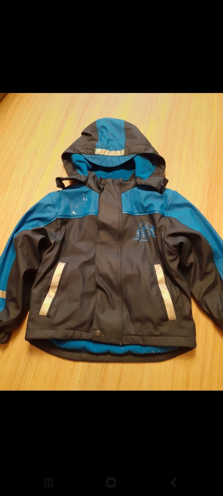 Schöne Regenjacke gefüttert, kleine Mängel vorhanden, siehe Foto, aber trotzdem ideal noch für Kiga!
