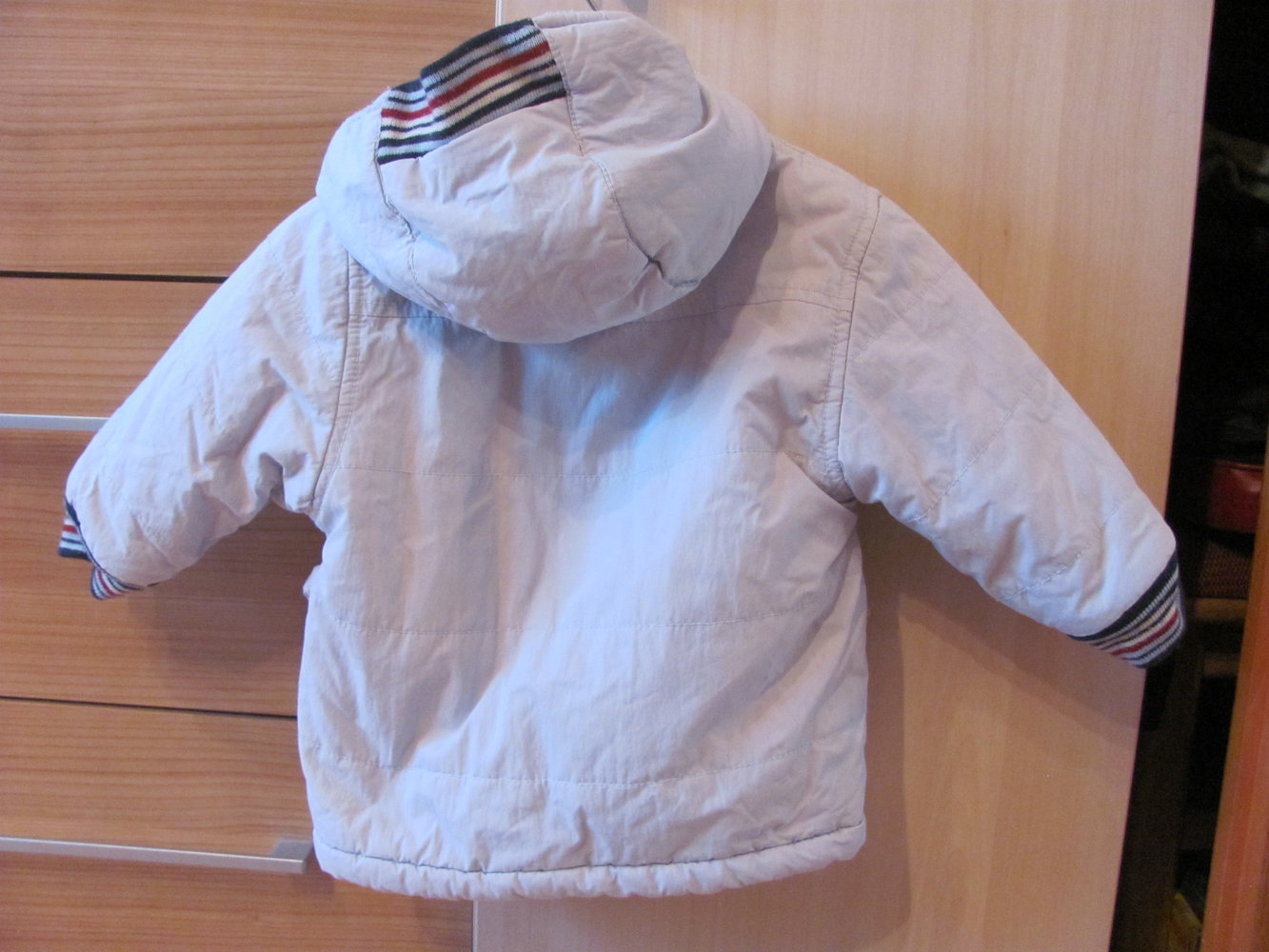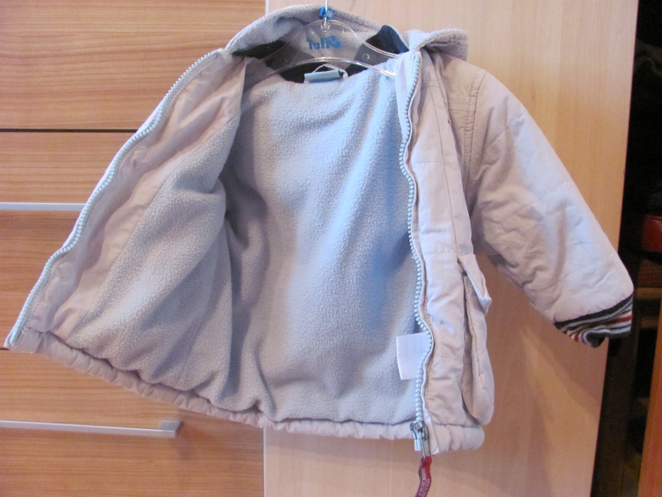 Winterjacke in der Größe 74, ganz kleine Flecken an der unteren Tasche und rechts neben dem Reißverschluss, normale Gebrauchsspuren