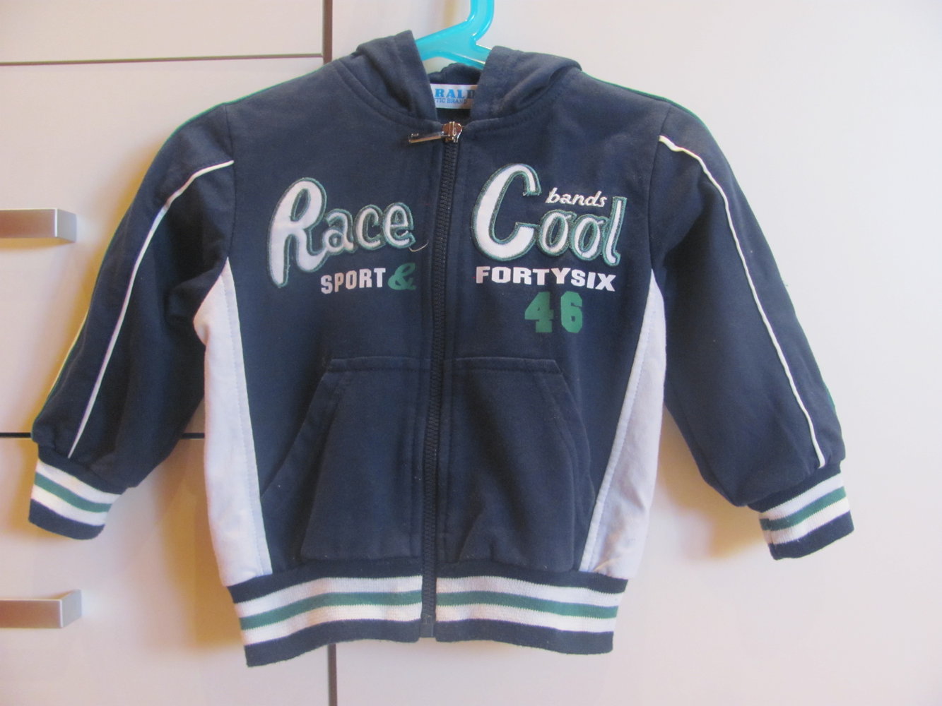 gut erhaltene Sweatjacke, Joggingjacke von Smarald, zu tragen ab 24 Monate laut Etikett. Wir haben die Jacke bei Größe 80 getragen. Keine Flecken oder Löcher.