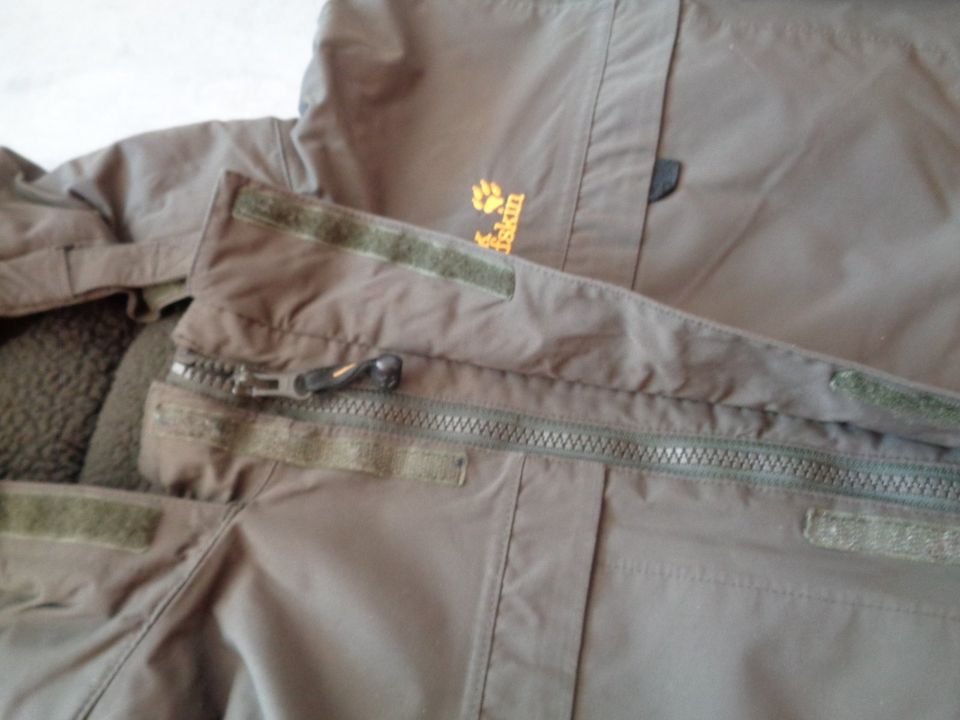Die Jacke ist gut erhalten, jedoch sind sowohl das Logo auf dem Ärmel als auch die Klettverschlüsse abgenutzt, s. Bilder. Die Klettverschlüsse lassen sich gut verschließen.