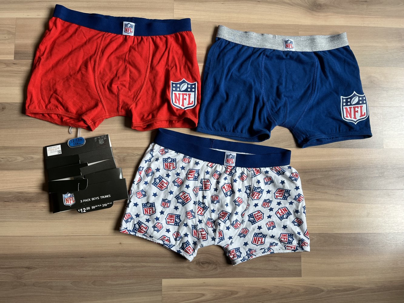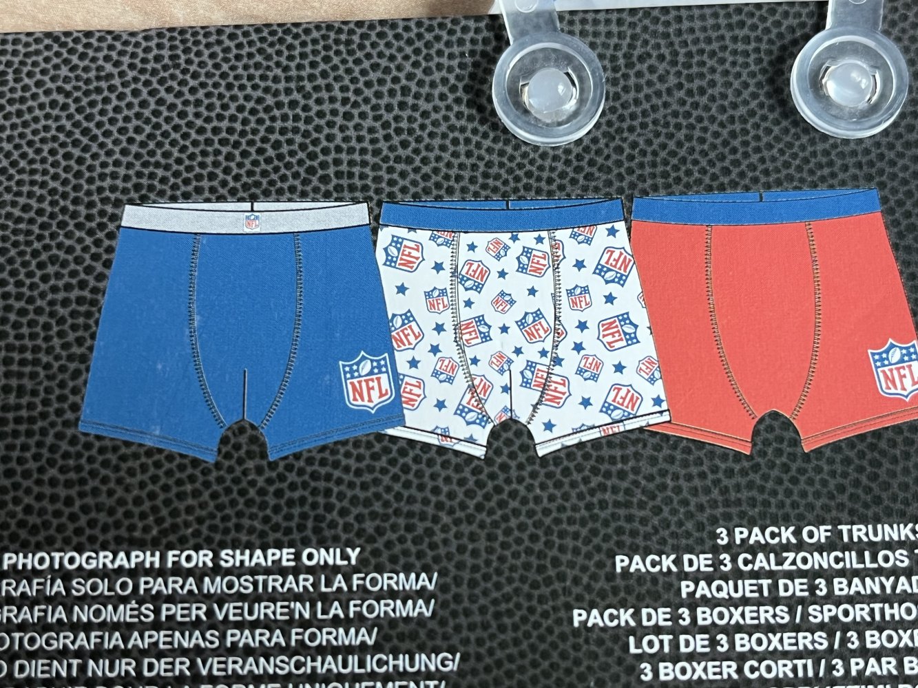 Drei Slipboxer mit NFL Motiven aus der NFL für Primark Kollektion.