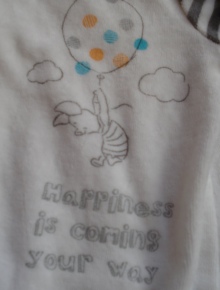 3 Unterhemden Gr.74/80 mit Autoprint. Bei dem hellen Unterhemd ist leider die Naht aufgegangen (siehe Foto). Sonst guter Zustand.
