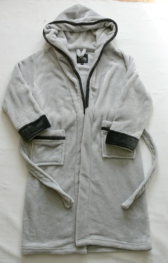= es passen auch kleine Frauen mit Konfektionsgröße 34-36 rein, der Bademantel hört dann über den Knien auf und die Ärmel sind was kurz