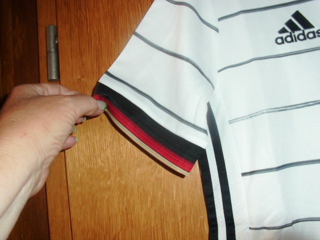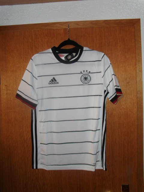 Biete hier ein Trikot von Adidas in Größe 164 an. Es handelt sich um das Heimtrikot des DFB in weiß. Vorn mit Streifen, dem Adidas Logo und das DFB Logo. Die Ärmelbündchen sind schwarz, rot , gold abgesetzt. Das Trikot ist neu, ungetragen und mit Etikett versehen. Es stammt aus einer Sammelauflösung.