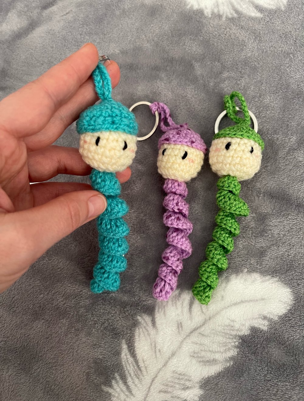 Schlüsselanhänger Wurm Farbe grün und lila und blau. Versand Post 2,90€. Paypal oder………