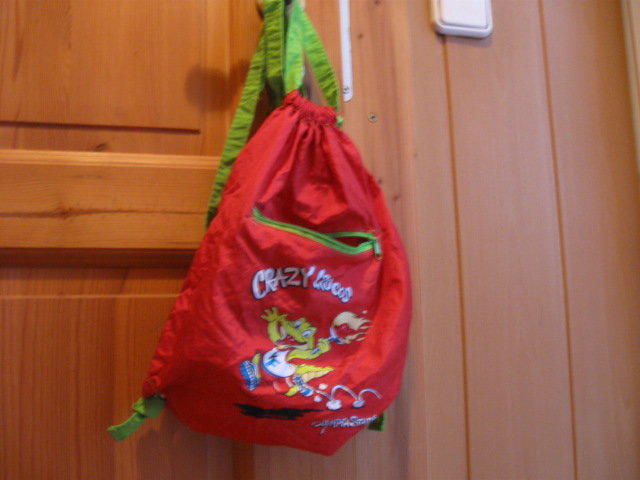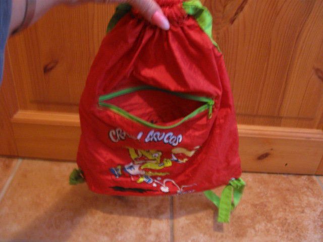 Biete diesen leichten Nylon Rucksack, mit einem lustigen Druck. Dieser Rucksack eignet sich ideal für allen möglichen Krims Krams, den man im Kindergarten gebrauchen kann.