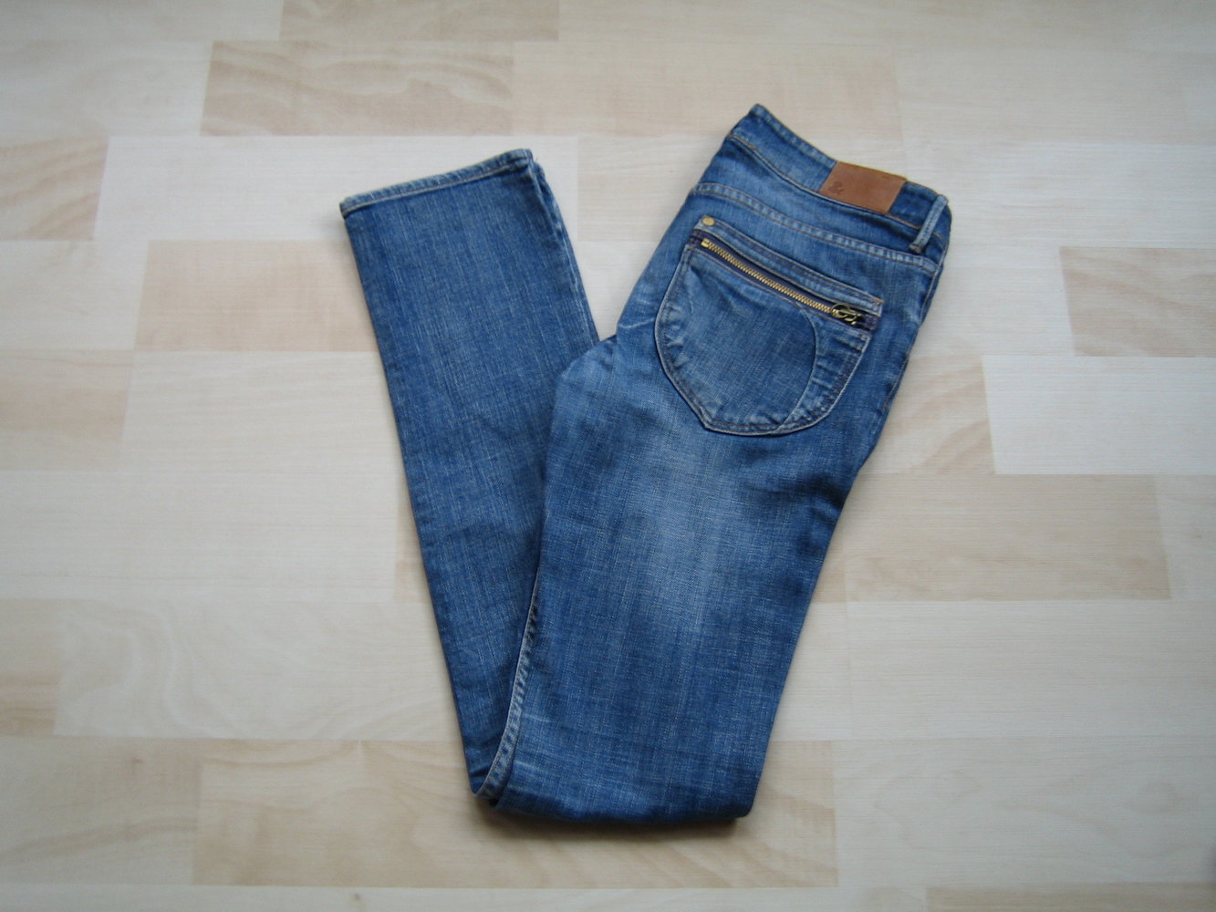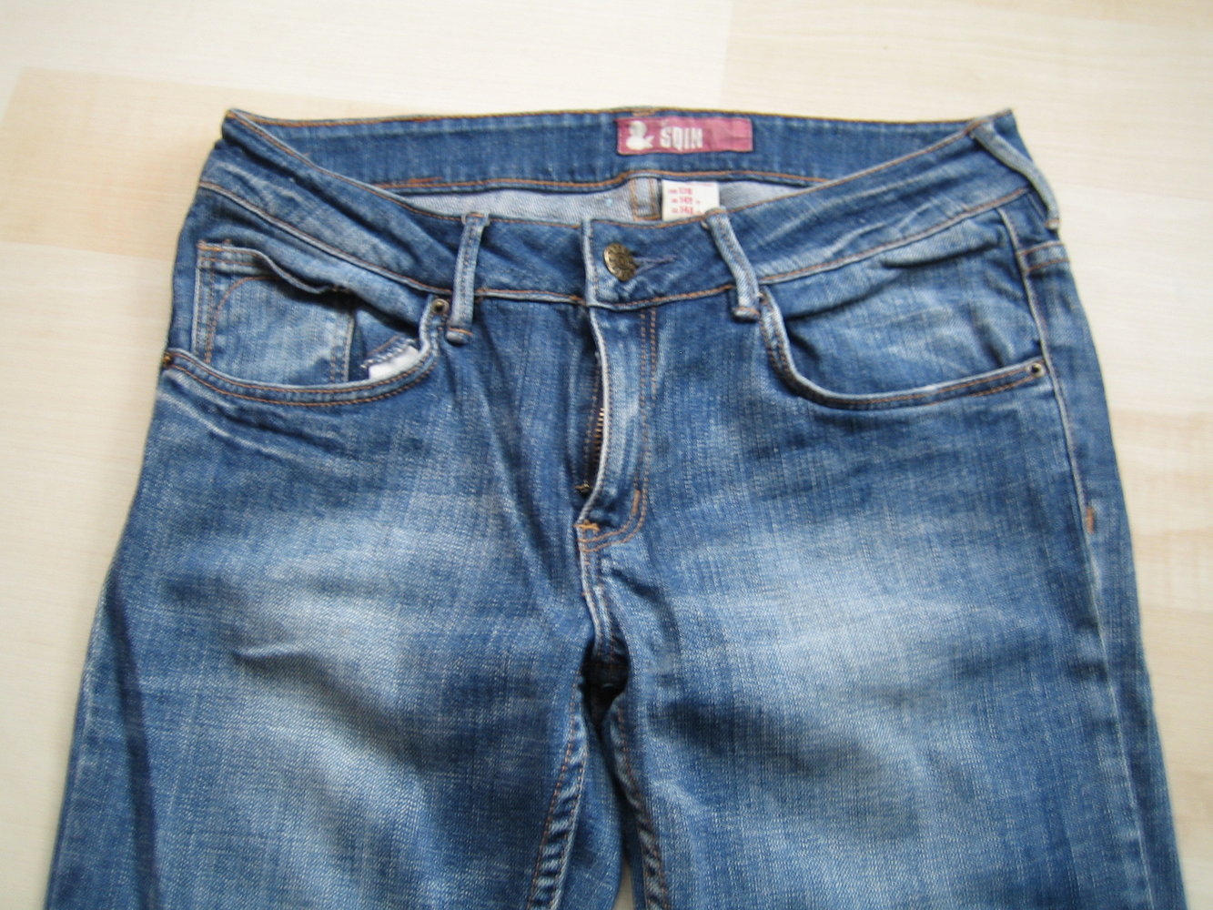 Stonewashed Jeans in blau von H&M. Vorne zwei Eingrifftaschen, hinten zwei Taschen mit Reißverschluss. Größe 170.