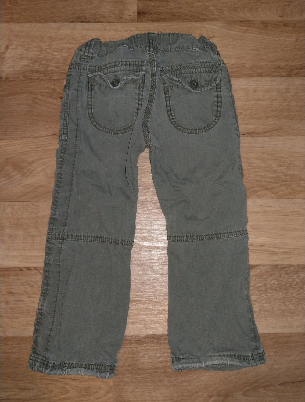 Hose in 104, leichte Gebrauchsspuren vorhanden, an den Knien. Der Gummi am Bund ist auch nicht mehr der Beste.