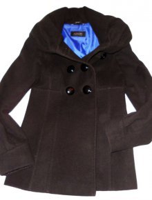 Kurzmantel Winterjacke Wolle Gr 164 XS schwarz Tweed Dufflecoat elegant Kragen