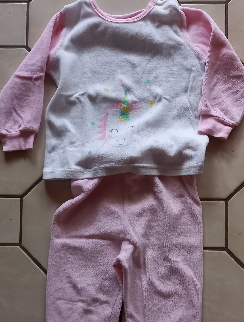 Süsser Schlafi in Gr. 86/92 in Nickistoff. Winziger Obstfleck auf dem Oberteil der mich nicht större, aber auch mit Fleckenteufel rausgeht.