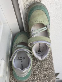 Gr. Etwa 26/27. Auf dem Gengenbacher Weihnachtsmarkt gekauft. Wurden zu Hause als Haisschuhe also indoor getragen. Ledersohle. Handgemacht. Mangel: vorne an jedem hausschuh eine schnur lose kann man nochmal durchziehen. Schön warm. Meine tochter hat sie heiss geliebt...