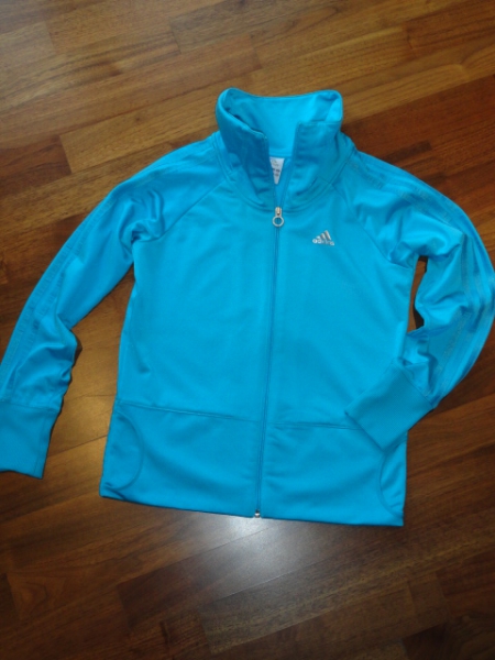 Tolle Sport- und Trainingsjacke ~* Gr. 164 ~* türkisfarben ~*durchgehender Reißverschluss ~* hochgezogene Kinnpartie ~* mit den obligatorischen drei Streifen ~*