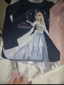 ein schönes Shirt in einem tollen blauton mit silber Pailetten, da seitlich mit Hannah Montana Schriftzug