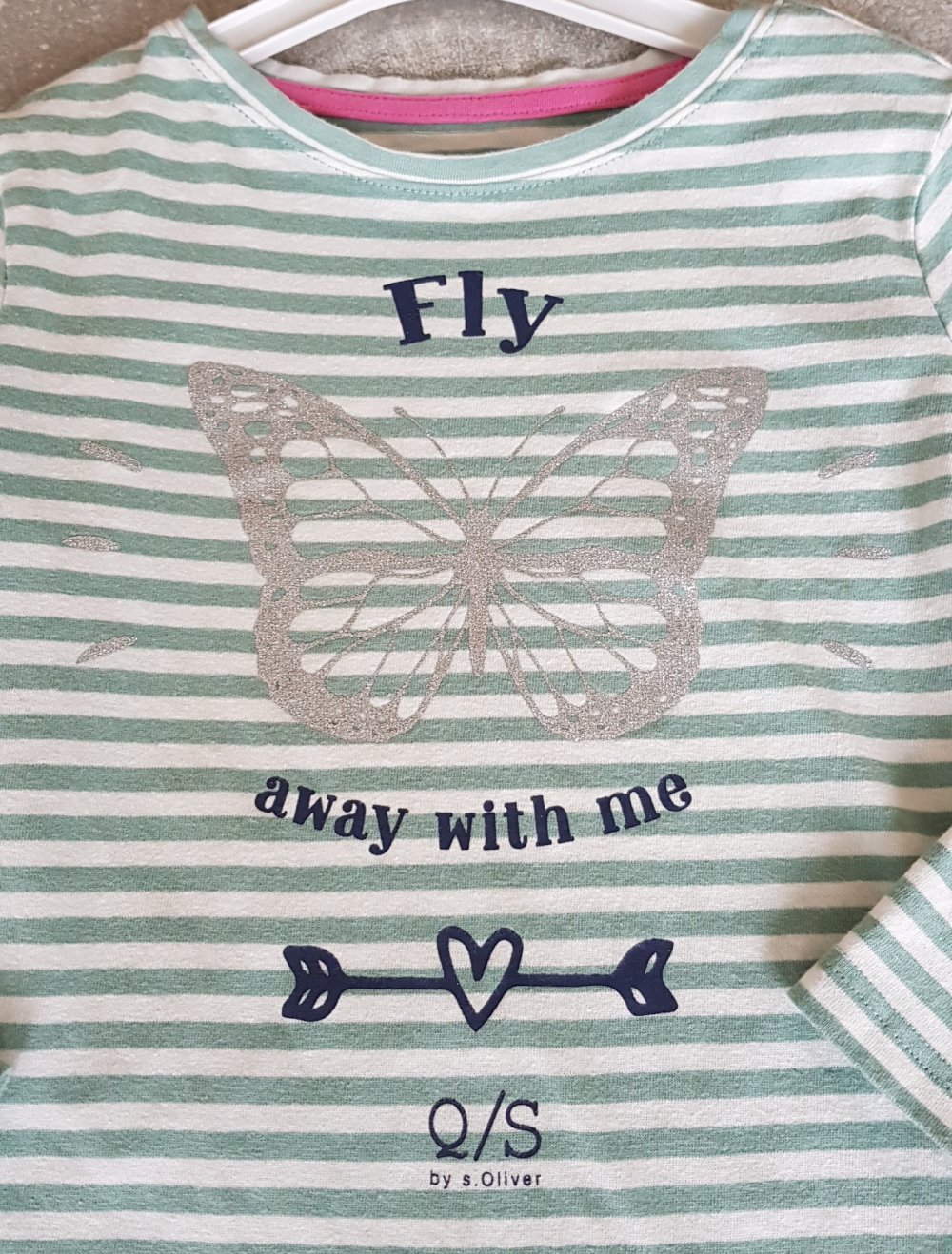 Langarmshirt Gr.104/110 #Schmetterling #grün #gestreift