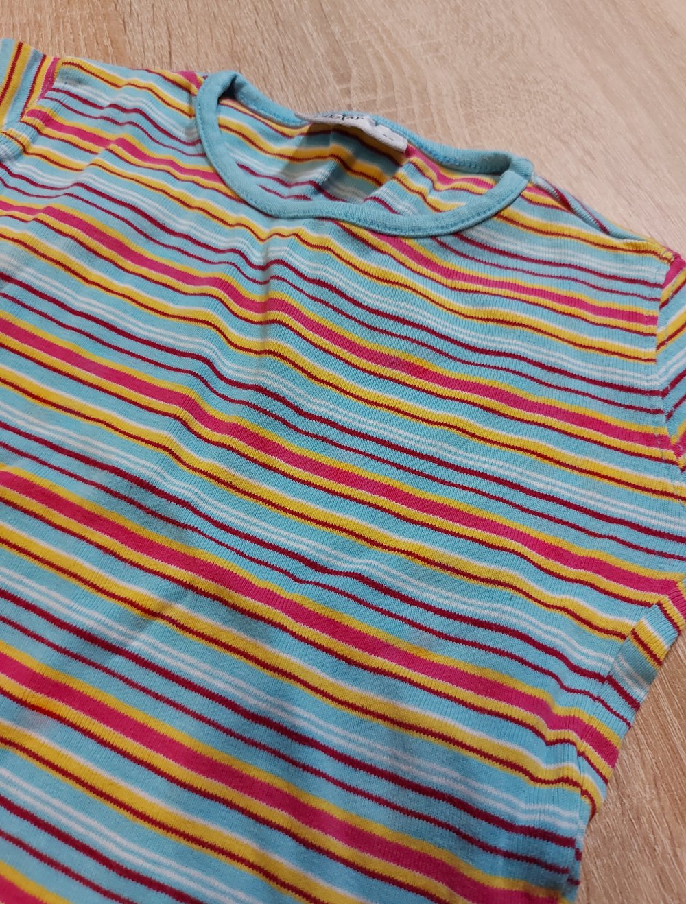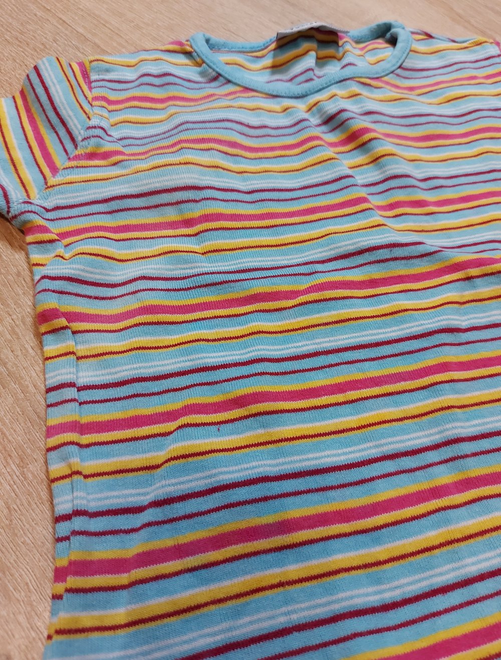 Hier hab ich ein schickes, bunt gestreiftes T-shirt, in der Größe 98 von Kik.