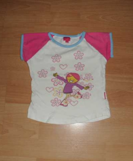 Biete hier ein T-Shirt von Topolino in Größe 92 an. Es ist rosa und besteht aus 100% Baumwolle. Vorn hat es eine kurze Knopfleiste und auf der linken Brustseite befindet sich ein kleiner aufgestickter Schmetterling. Das T-Shirt hat auch einen Kragen. Es wurde getragen und ist gut erhalten.