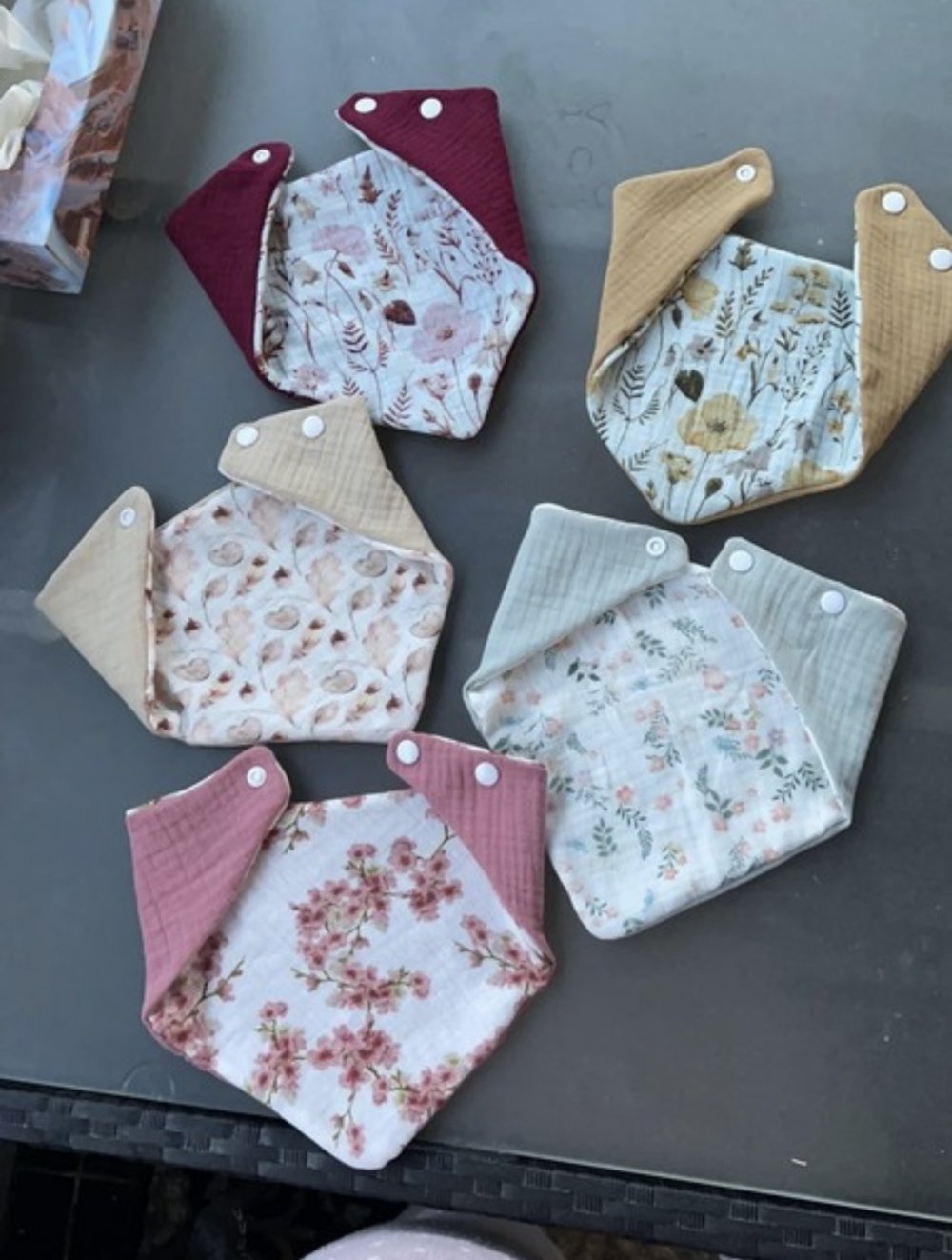 Ich verkaufe handgemachte musselin Wendetücher für Kinder. Einfach gerne eine Nachricht schreiben, an welchem Tuch/Stoff Interesse besteht.